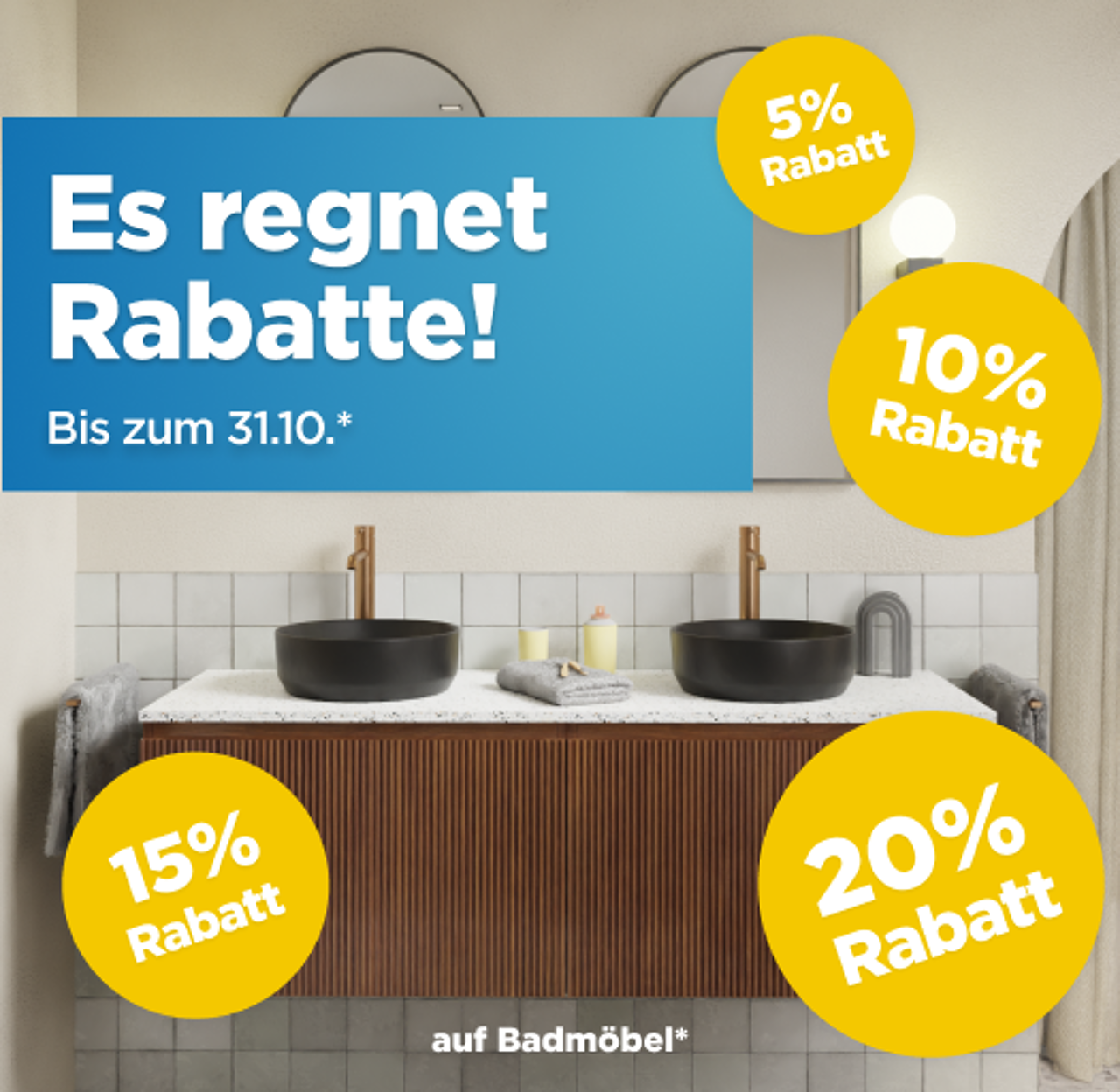 Bei uns erhältst du Badmöbel, die ideal zu deiner Einrichtung passen. Dein Budget für die Einrichtung deines neuen Badezimmers ist doch etwas enger als geplant? Dann schau doch mal in unseren Badmöbel-Schnäppchen oder nutze eine unserer immer wiederkehrenden attraktiven Aktionen. Hier findest du hochwertige Badmöbel zu besonders niedrigen Preisen.