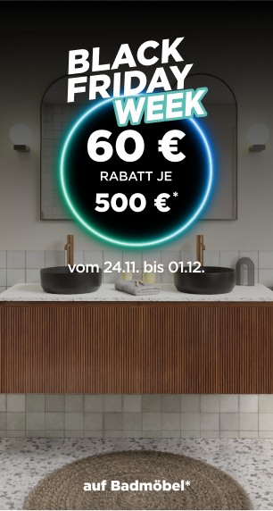 Bei uns erhältst du Badmöbel, die ideal zu deiner Einrichtung passen. Dein Budget für die Einrichtung deines neuen Badezimmers ist doch etwas enger als geplant? Dann schau doch mal in unseren Badmöbel-Schnäppchen oder nutze eine unserer immer wiederkehrenden attraktiven Aktionen. Während des Black Friday 2025 warten dort zusätzlich spannende Black Friday Deals auf dich.