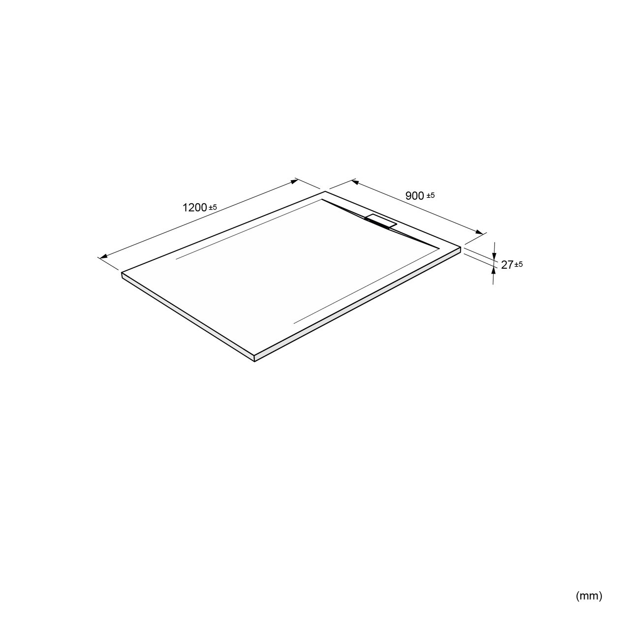 Diese Duschtasse ist mit einer Breite von 90 cm und einer Länge von 120 cm ausgeführt.