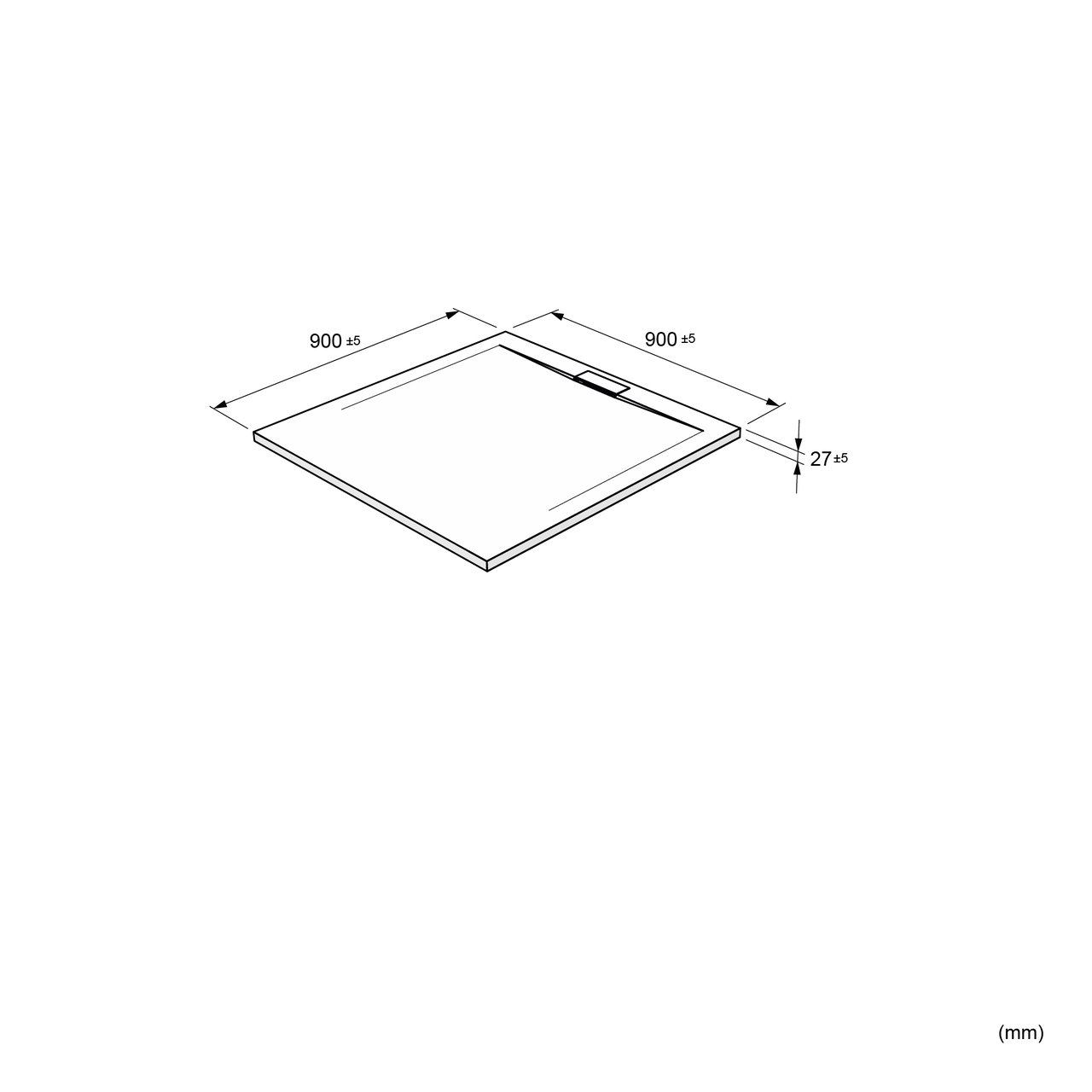 Diese Duschtasse ist mit einer Breite von 90 cm und einer Länge von 90 cm ausgeführt.