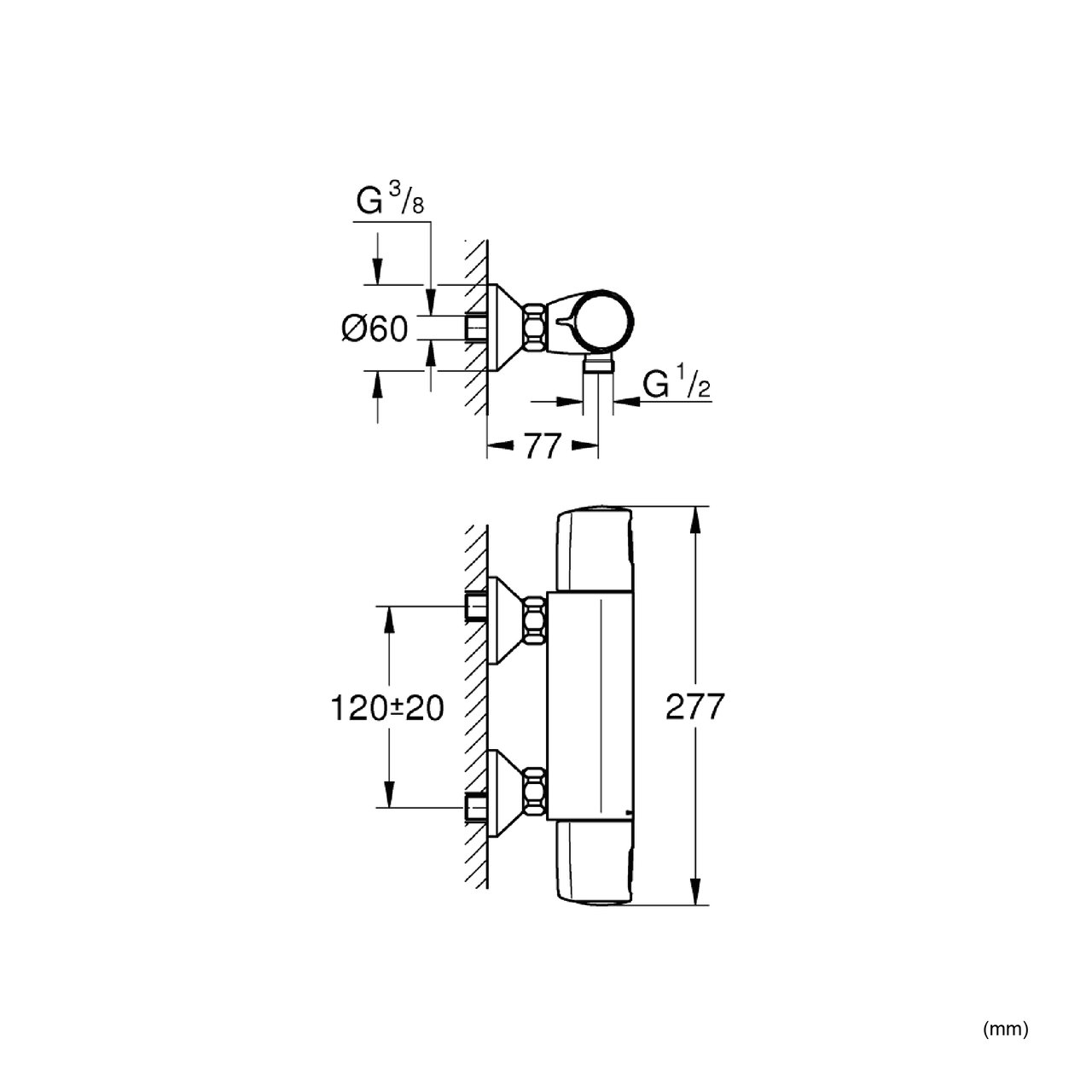+ Thermostatarmatur, ausschließlich geeignet für Mittenabstand 12 cm + Safe Touch: sorgt dafür, dass die Armatur nicht zu heiß wird.