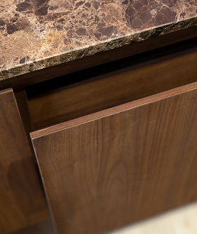 ✔ Natürliche Materialien – Nussbaum, Marmor und sanfte Farbtöne schaffen ein warmes, stilvolles Gesamtbild.
