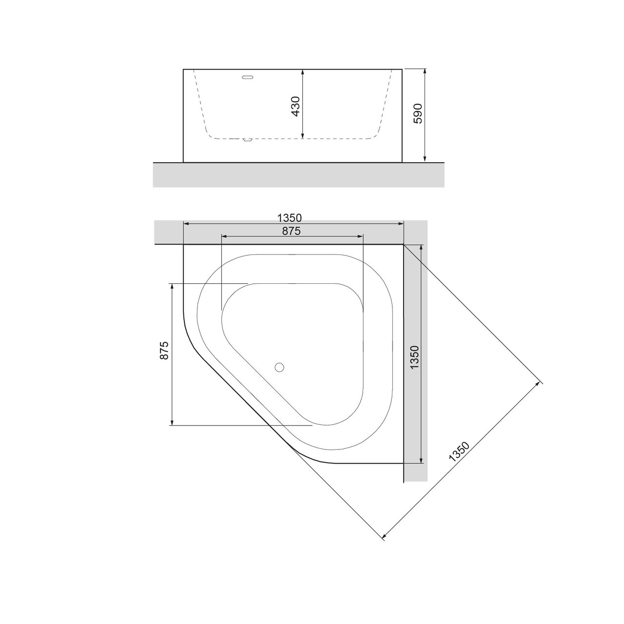 Diese Badewanne in der Farbe Weiß Glänzend hat eine Größe von 135 cm x 135 cm, perfekt für ein komfortables Badeerlebnis für zwei Personen. Die Badewanne ist mit zwei Liegeflächen für zusätzliche Entspannung und Unterstützung ausgestattet.