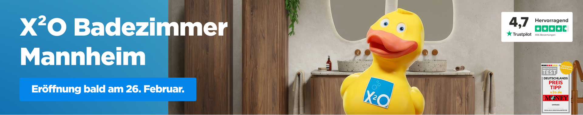 Bist du auf der Suche nach einem neuen Badezimmer in Mannheim? Dann solltest du unbedingt einen Besuch in der X²O Ausstellung in Mannheim machen. Hier kannst du jede Menge Inspiration sammeln und Pläne für dein Traumbadezimmer schmieden. Lass dich in einer unserer 72 Badezimmeranordnungen für jedes Budget überraschen und inspirieren. Suchst du nach einem stilvollen oder luxuriösen Badezimmer oder möchtest du lieber ein Budget-Badezimmer einrichten? Dann bist du bei X²O Badezimmer Mannheim genau richtig. Lasse dich auf über 2.000m² inspirieren.