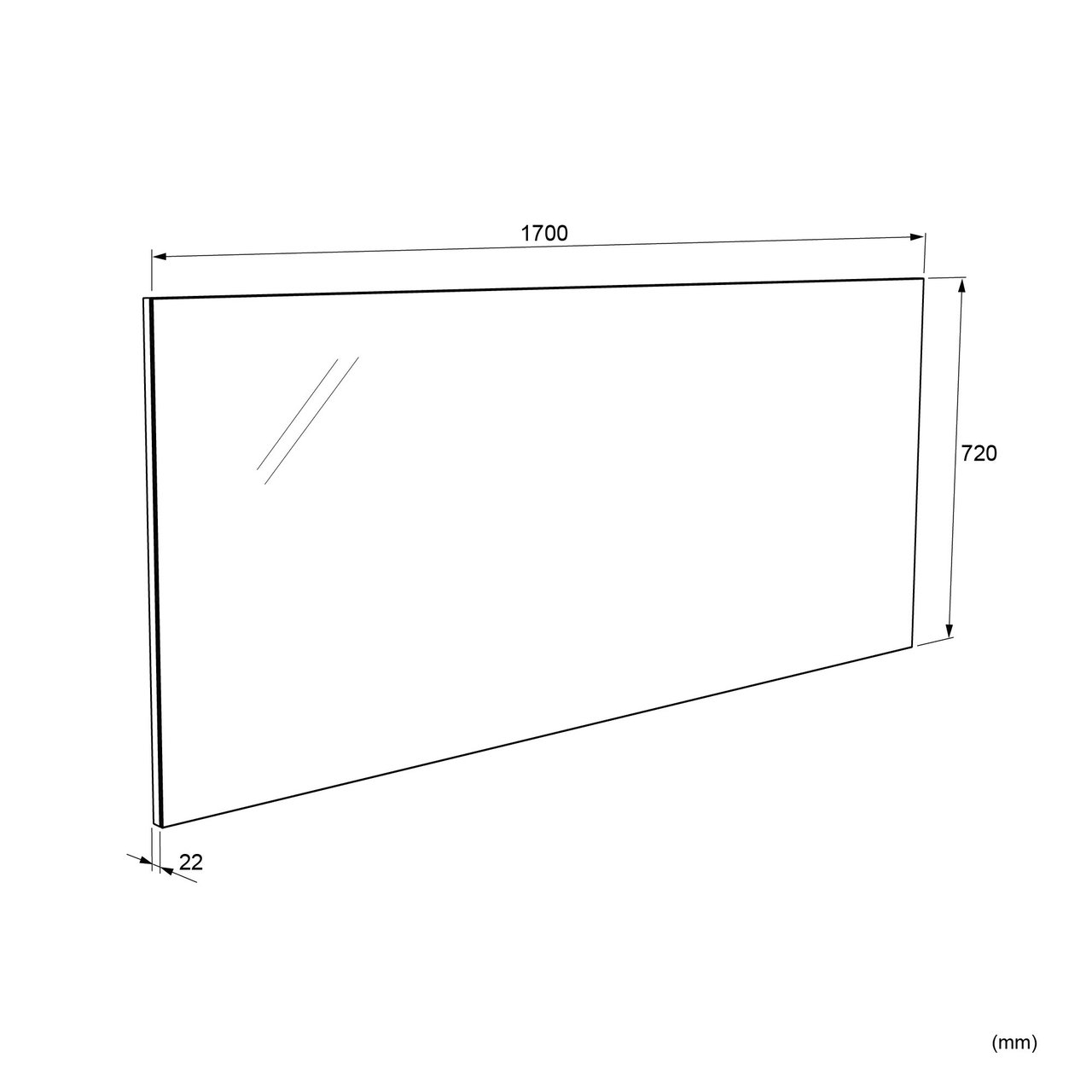 Dieser rechteckige Spiegel hat eine Breite von 170 cm und eine Höhe von 72 cm.Der Spiegel passt dank seines schlichten Designs in jedes Badezimmer.