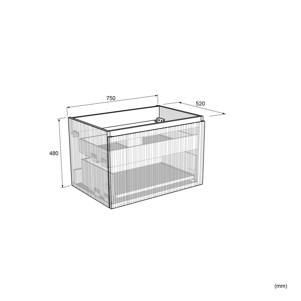 Dieser Bad-Unterschrank mit MDF mit PVC-Folie und 2 Schubladen ist 75 cm breit, 48 cm hoch und 52 cm tief. Durch sein geradliniges Design passt dieser hängende Schrank in Eiche schwarz in jedes Badezimmer.