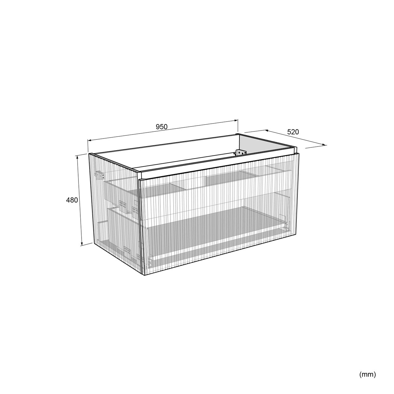 Dieser Bad-Unterschrank mit MDF mit PVC-Folie und 2 Schubladen ist 95 cm breit, 48 cm hoch und 52 cm tief. Durch sein geradliniges Design passt dieser hängende Schrank in Eiche schwarz in jedes Badezimmer.