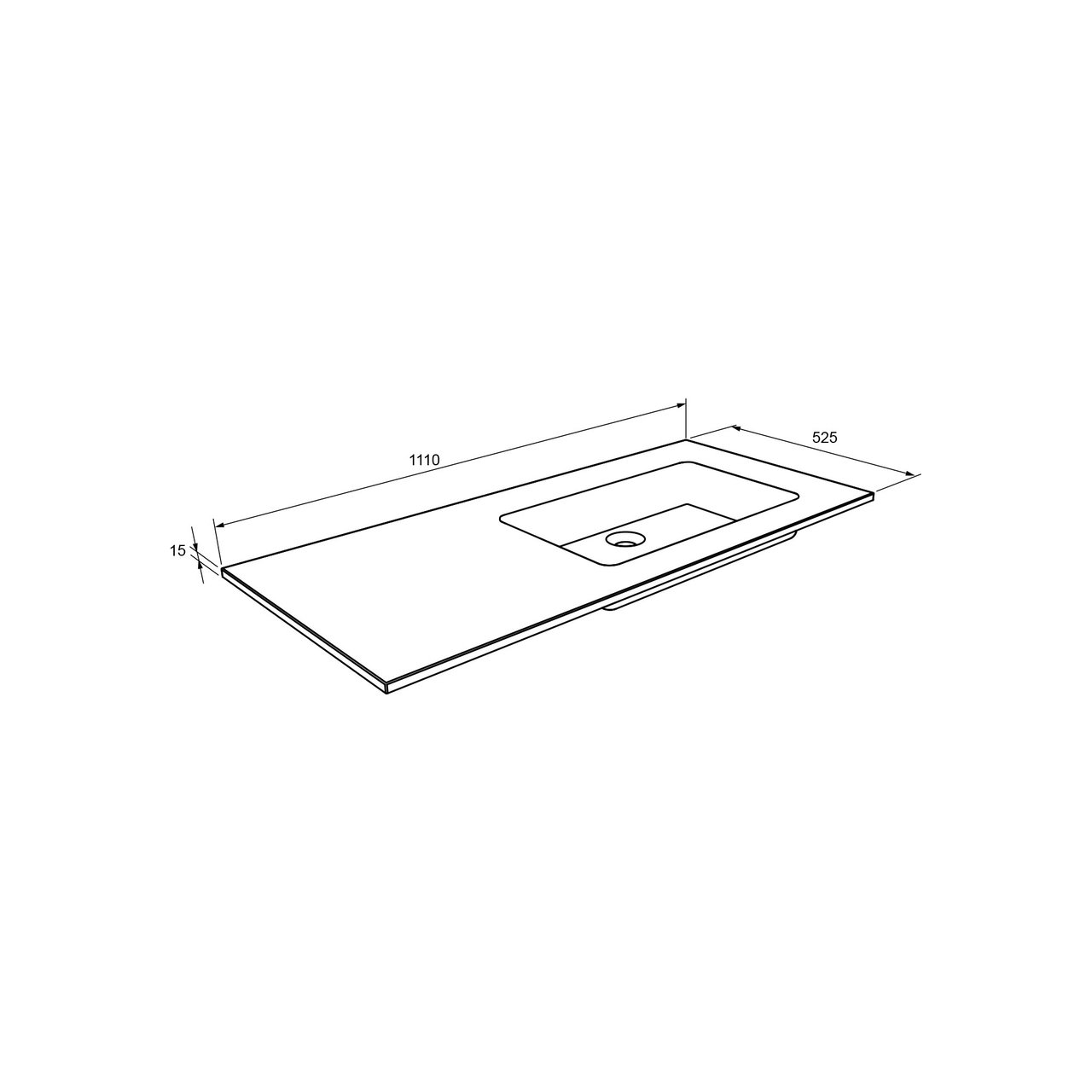 Dieser asymmetrische Waschtisch aus Quarz mit integriertem Aufsatzbecken ist 110 cm breit, 52 cm tief und hat eine Randhöhe von 1,5 cm. Dieser matt schwarze Waschtisch zeichnet sich durch ein minimalistisch-zeitgemäßes Design aus, mit dem er sich nahtlos in jedes Badezimmer einfügt.