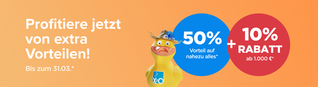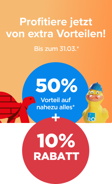 Den ganzen März über profitierst du von 50 % Rabatt auf fast alles im Vergleich zum Listenpreis. Und das ist noch nicht alles: Zusätzlich bekommst du 10 % Sofortrabatt* obendrauf, wenn du für mindestens 1.000 € einkaufst.