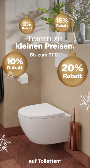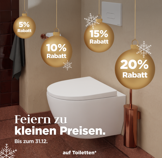 In unseren Toiletten-Angeboten findest du besonders hochwertige Toiletten zu unschlagbaren Preisen. Außerdem hast du die Möglichkeit, dir direkt das passende Waschbecken und weitere passende Badmöbel sowie Accessoires auszusuchen. So entsteht ein stimmiges Bad, in dem sich jeder wohlfühlt. In unseren Showrooms kannst du auf einer Ausstellungsfläche von 2000m2 alle Sanitäranlagen und Möbel live begutachten und dein Bad nach deinen Vorstellungen gestalten. Wir beraten dich gern und beantworten Fragen zu unseren Toiletten und allen anderen Produkten.