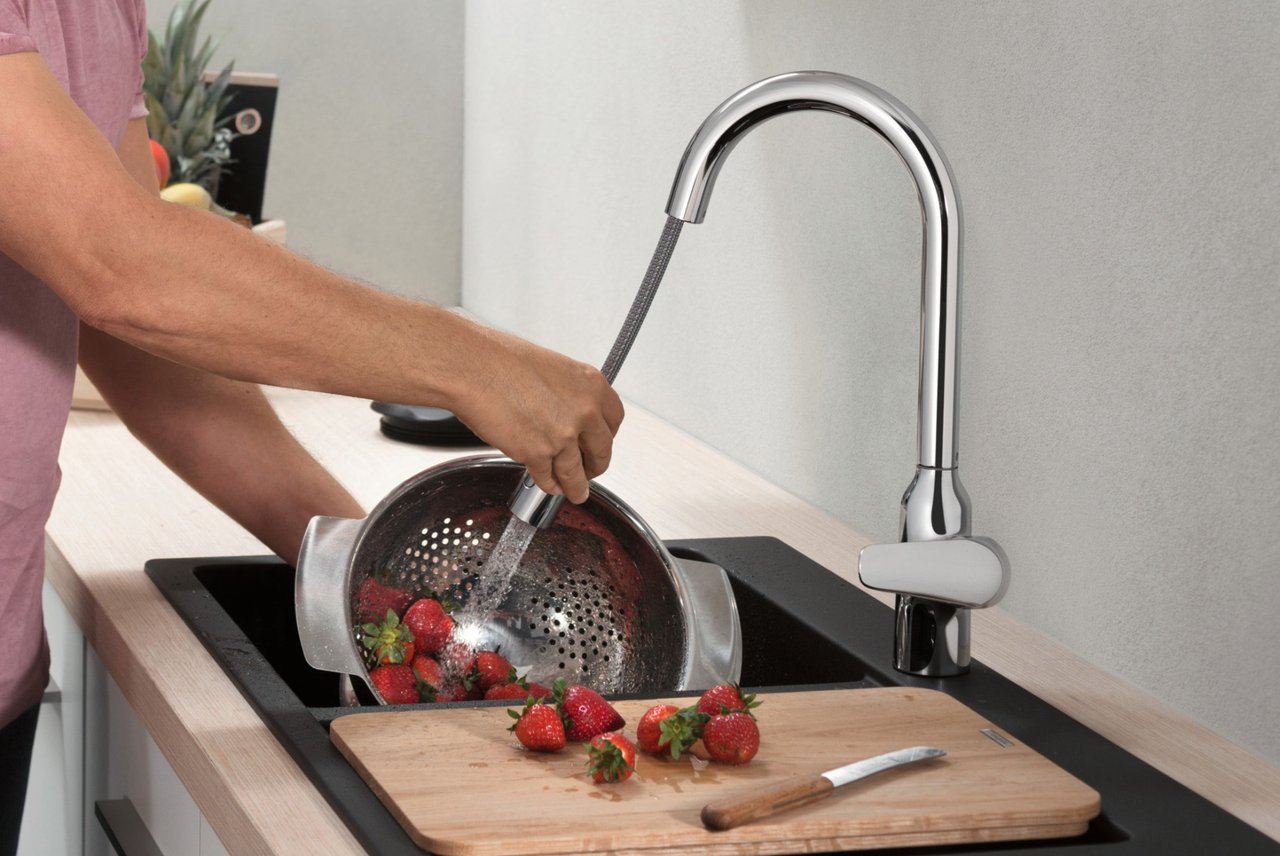 Das Unternehmen Hansgrohe ist auch Spezialist für Küchenarmaturen. Eine Küchenarmatur muss sich allem voran durch einen hohen Benutzerkomfort auszeichnen. Dies wird bei Hansgrohe durch Modelle mit praktischen Sprühköpfen, herausziehbaren Handbrausen und durch die diskrete sBox erreicht. Eine Küchenmischbatterie von Hansgrohe ist auf den ersten Blick erkennbar. Auch hier existieren ikonische Modelle wie z. B. Talis und Focus.